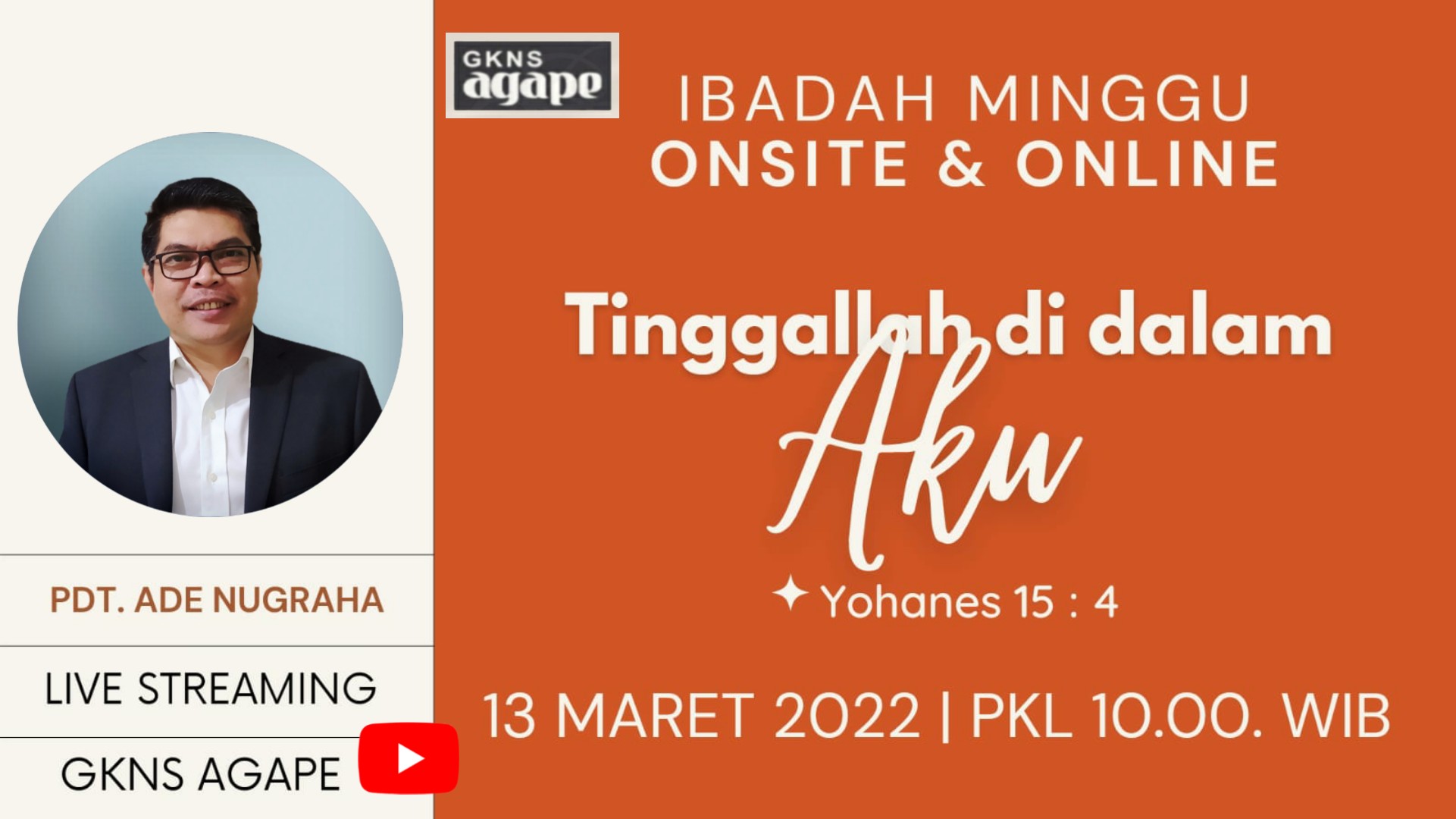 IBADAH MINGGU AGAPE, 27 MARET 2022