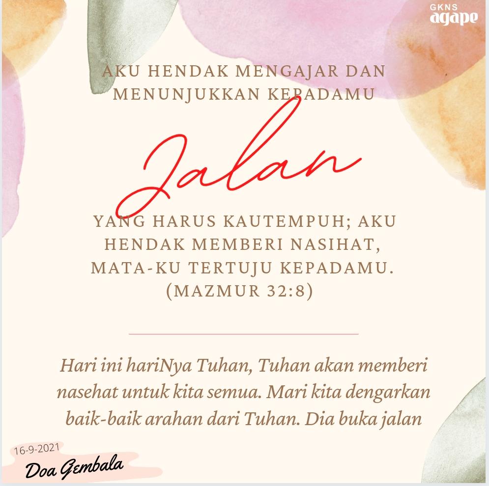 DOA GEMBALA AGAPE 16.9.21 Terpujilah Tuhan yang setia, yang tidak pernah meninggalkan kita yang selalu menunjukkan jalanNya kepada kita.