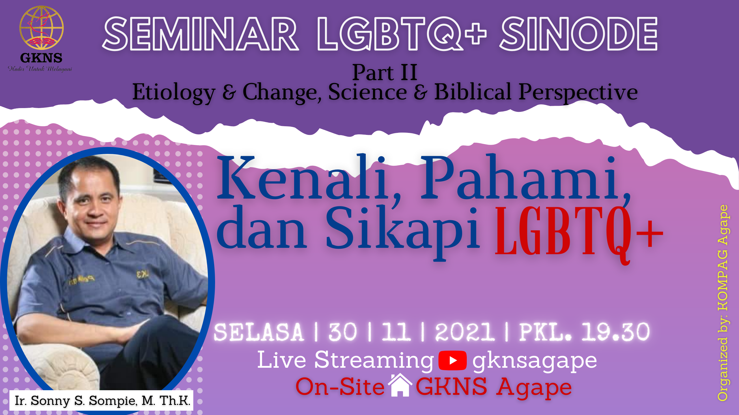 Dalam seminar LGBTQ yang diadakan oleh Sinode GKNS, kita akan mengupas masalah ini untuk mengenali, memahami lebih dalam dan bagaimana menyikapinya.